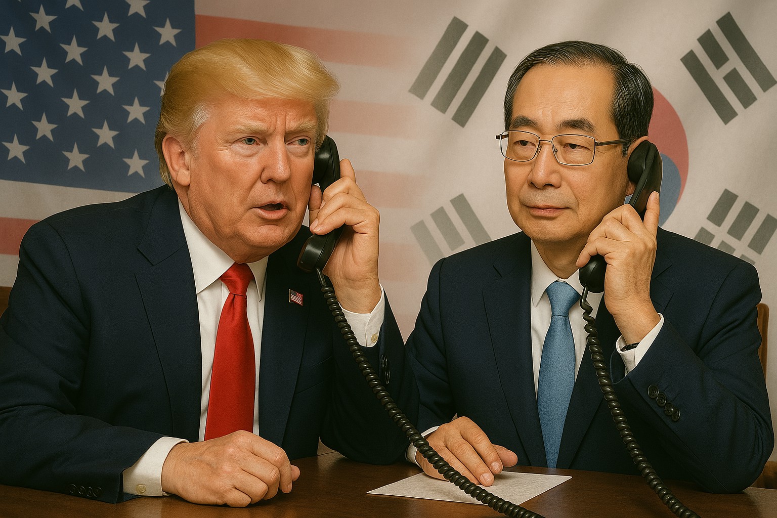 2025년 4월 8일, 한덕수 국무총리가 정부서울청사 집무실에서 도널드 트럼프 미국 대통령과 약 28분간 전화 통화를 진행했다. 이는 트럼프가 두 번째 임기를 시작한 이후 한미 고위급 간의 첫 직접 소통으로, 의례적 인사 이상의 전략적 메시지가 담긴 대화로 평가된다. 통화 직후 트럼프는 소셜미디어에 "한국 측의 대표단이 미국에 도착 중이며 상황은 긍정적이다"는 취지의 발언을 올려, 한미 간 주요 현안들을 묶어 논의하는 협상이 본격화될 것임을 암시했다. 통화 내용에는 무역 적자 문제, LNG 수입 확대, 방위비 분담금, 조선업 협력, 관세 문제 등이 포함되어 있었으며, 이는 트럼프 특유의 연계협상(Linkage Politics)의 전형적인 예시로 해석된다.