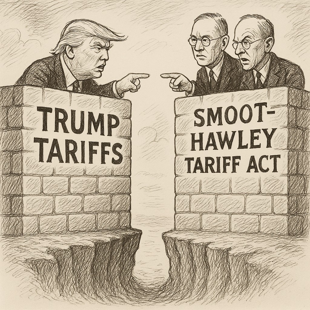 두 정책의 시행 목적, 정책 수단, 계산 방식, 적용 범위에서의 구체적 차이를 밝힌다. 스무트-홀리 관세법은 1930년 국회 주도로 입법된 전통적 보호무역법안으로, 1,000개 이상의 품목에 일괄적으로 고율 관세를 적용했다. 이는 농업과 제조업을 모두 포함한 광범위한 품목에 적용되었고, 미국의 수출입 구조 전반에 일방적 변화를 가져왔다. 반면 트럼프의 상호관세는 대통령 행정명령 중심의 정치적 지렛대로 작용했으며, 대부분 특정국가를 겨냥한 선택적 조치였다. 특히 트럼프는 IEEPA, 무역확장법 232조, 무역법 301조 등 다양한 법적 수단을 조합해 관세를 활용했으며, 해당국의 관세율 및 비관세 장벽을 단순화한 방식으로 계산한 ‘무역적자 대비 수입비율’을 기준으로 관세율을 설정했다. 실제로 트럼프는 한국에 25%, 중국에 34%, 일본에 24% 등 맞춤형 상호관세율을 발표했고, 이는 국가 간 무역협정이나 FTA 체결 여부와 무관하게 독자적으로 부과되었다. 반면 스무트-홀리 법은 당시 미약했던 국제 무역체제 속에서 자국 중심의 무차별적 고율 관세를 적용해 글로벌 무역을 위축시켰다. 트럼프는 관세를 협상의 도구로 삼아 '줄 건 주고, 얻을 건 얻는' 실리외교를 목표로 했다면, 스무트-홀리 법은 외부 세계의 반발과 무역보복을 전혀 고려하지 않은 채 정치적 타협으로만 추진된 일방적 정책이었다. 결국 트럼프의 관세는 다자무역체제를 우회하는 실용주의적 수단인 반면, 스무트-홀리는 비효율적인 보호무역주의의 전형이었다.