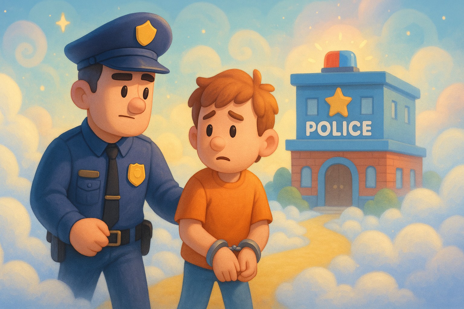꿈에서 경찰에게 잡히거나 수갑을 차는 장면은 제한, 억압, 혹은 속박된 상황을 나타냅니다. 특히 경찰서로 끌려가는 꿈은 현재 삶에서 자유를 제한하는 요소나 타인의 감시 아래 있는 듯한 불안감을 상징합니다.